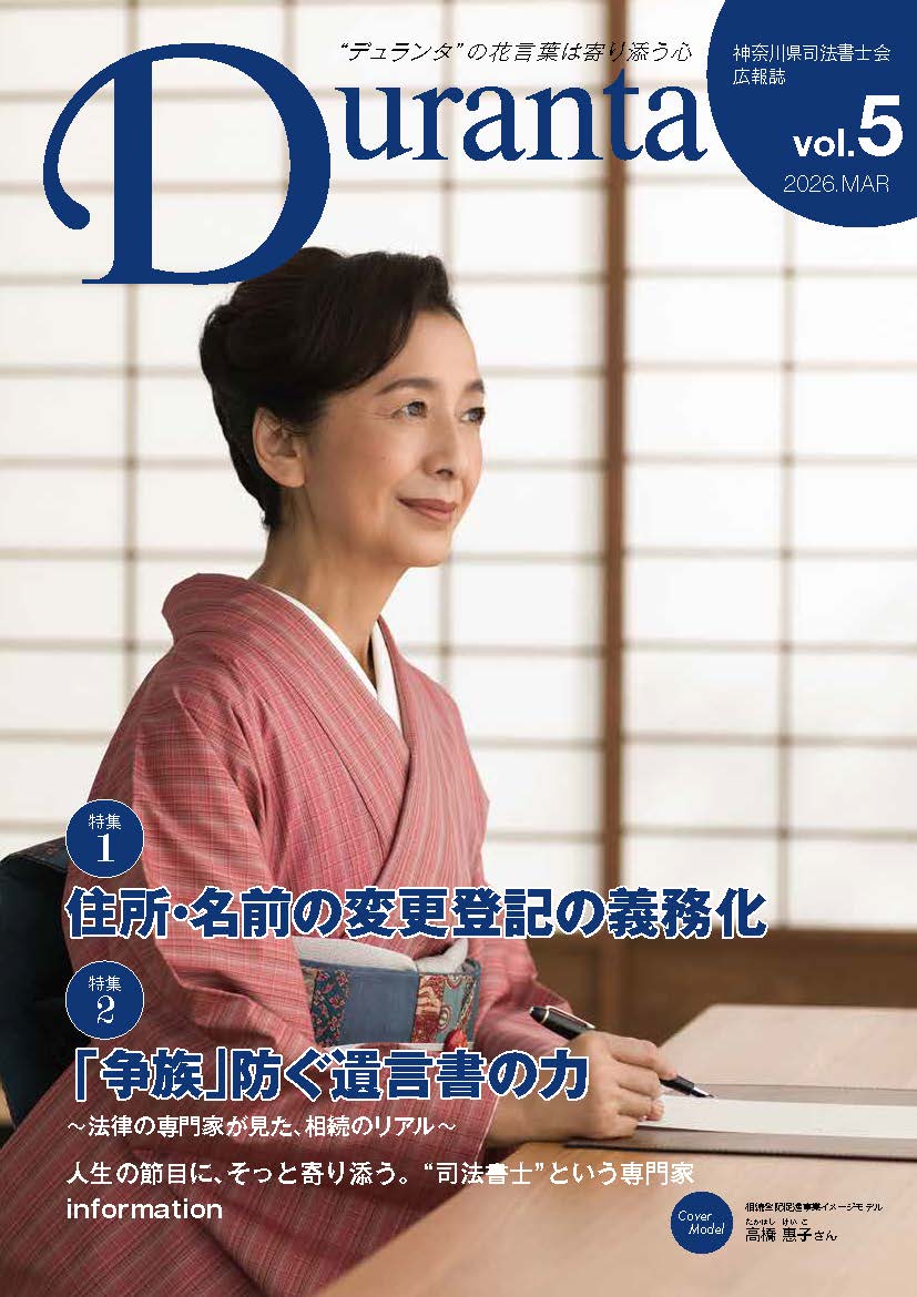お知らせ一覧 相談会 2026.3.13 令和8年3月21日(土)司法書士無料相談会(湘南支部)を開催いたします 相談会 2026.3.10 令和8年3月18日(水)司法書士による無料法律相談会(横浜東支部)を開催いたします 相談会 2026.2.27 令和8年3月7日(土)司法書士無料相談会(湘南支部)を開催いたします お知らせ 2026.2.18 令和8年2月13日(金) 大和市と空家等対策に関する協定を締結しました お知らせ一覧 特集ページ 公式チャンネルはこちら